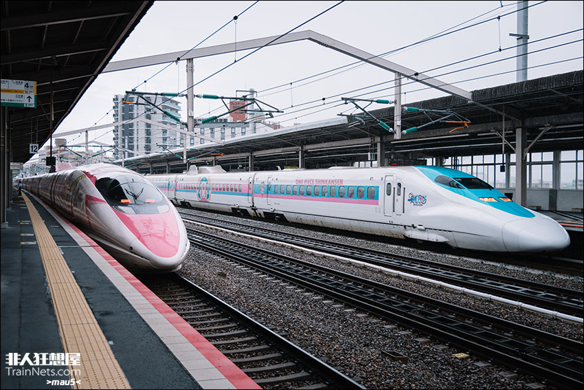 2025年9月,山阳新干线西明石站,Hello Kitty涂装500系和海贼王涂装700系同框。