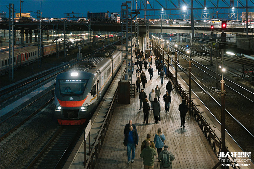 2024年10月6日,俄罗斯莫斯科。中央直径线D2列车EP2D停靠里加。2017年莫斯科通过国铁线路的通勤化改造,仅用2年就开通首条中央直径线,弥补千万人口却没有通勤快铁的尴尬。这些线路与城郊线路直通运行,前往金环小镇无需换乘十分方便。作为快铁的后发城市,或许能对国铁通勤化带来一些启发。