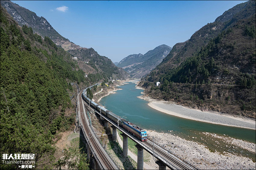 2026年2月20日,宝成铁路。客车K291次(昆山-成都西)接近已撤销的军师庙站。