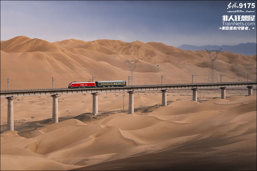 57061次列车行驶在沙漠之中