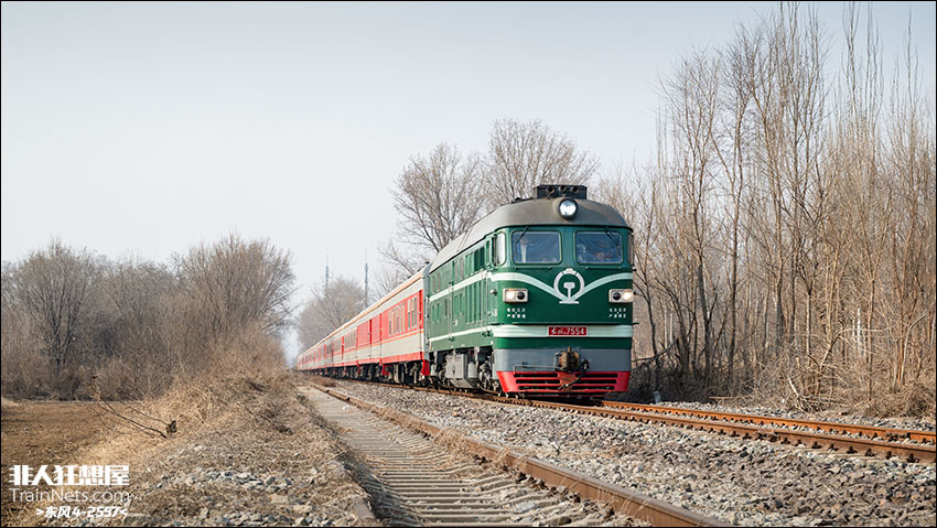 2026年3月,良陈线,东风4牵引工务宿营列车驶过一处废弃车站。