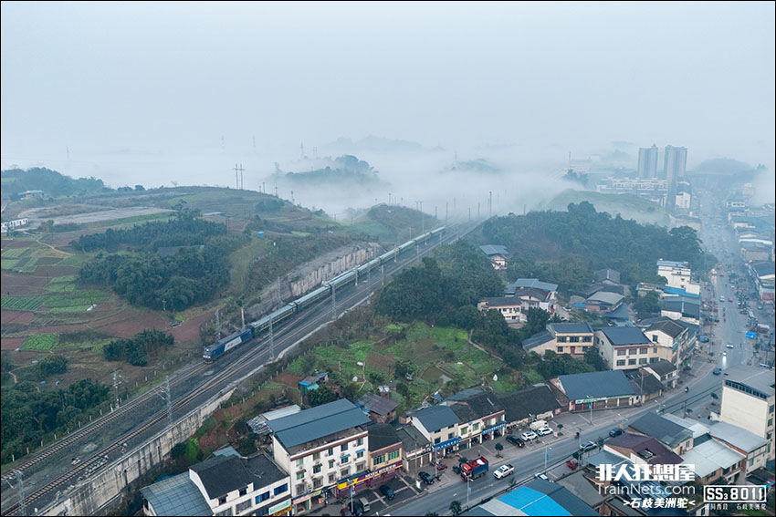 2026年1月17日,叙毕铁路。K9367次列车(叙永北-麻尾)由叙永北站发出,清晨的雾气笼罩着山丘与城镇。