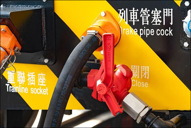 该车制动系统采用欧标配置,可与香港地铁既有车辆联挂运行,保障制动性能,该车首次采用排气冷却装置,并配置了静音型动力系统,满足运用现场环保及噪音等级需求,为操作人员提供了舒适的作业环境。