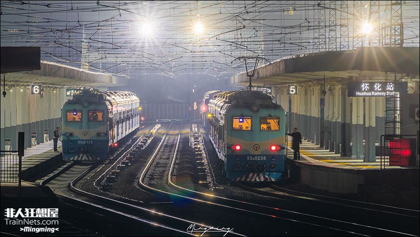 2025年12月6日,湖南怀化,7269次(怀化-塘豹)、7272次(怀化-梅江)与后面藏起来的7266次列车(怀化-澧县北)在怀化站整装待发。