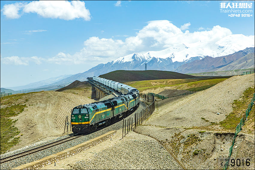 :2025年7月,NJ2机车四机重联牵引Z9818次列车(拉萨-西宁)翻越昆仑山脉,在玉珠峰皑皑白雪的映衬下冲下大坡。