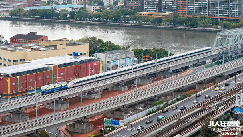 2026年3月29日,广湛高铁。因当日突发线路故障,广铁派出DF11-0249机车前往救援G6115次,图为救援58102次通过珠江大桥。