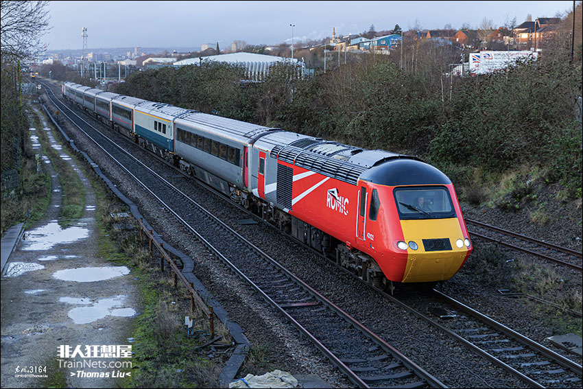 2025年8月22日,英国谢菲尔德。清晨,HST旅游列车从谢菲尔德站启程,一路向北进发。