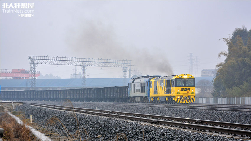 2026年2月,四川连界,连燕铁路,澳大利亚南方短途铁路公司(SOUTHERN SHORTHAUL RAILROAD)AC50 202与蜀道集团川西分公司DF8B 5968携手牵引47507次(连界-乐山港)。