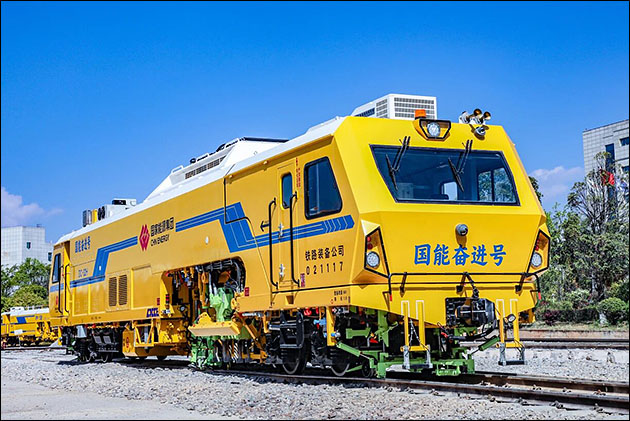 配属国能集团的DC-32H型双动力智能捣固车。(图/铁建装备)