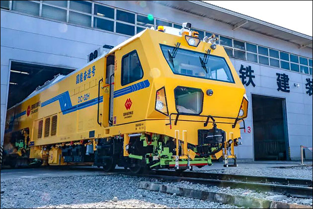 DC-32H型双动力智能捣固车,是中国铁建高新装备股份有限公司设计生产。