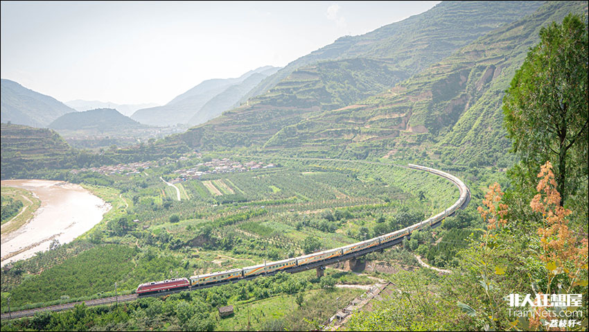 2025年7月15日,兰局SS7E牵引“大河之南”号旅游列车Y360次通过宝鸡市凤阁岭站东弯道。