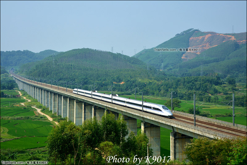 2015年9月。武广高铁。韶关曲江,CRH380A通过白沙乡。(图/电力客车K9017)