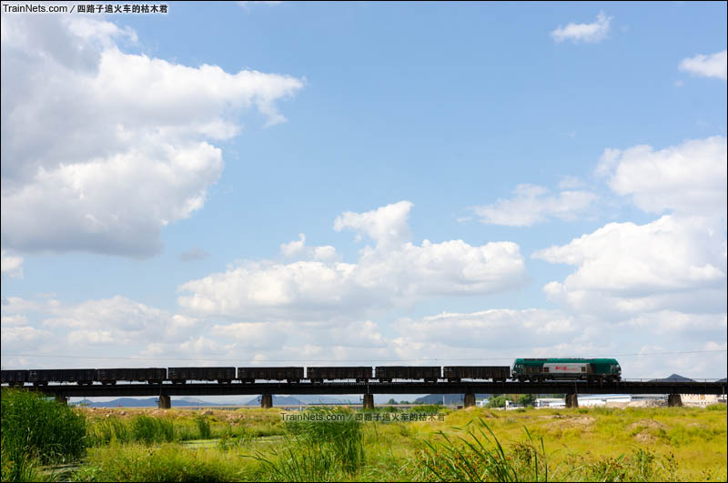 2015年9月。胜利日假期。锦承铁路,朝阳往北票南方向。HXN3牵引货列。(图/四路子追火车的枯木君)