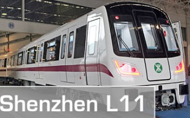 深圳地铁11号线列车,由株洲电力机车有限公司生产,运行速度120km/h,是目前中国时速最快的八编组A型地铁列车。最大载客量2564人。