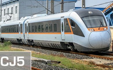 CJ5型混合动力城际动车组,2014年由中车长客股份公司设计生产,最高速度160km/h,采用内燃动力包或动力电池组牵引时最高速度120km/h。