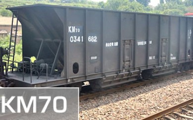KM70型煤炭漏斗车,由太原机车车辆厂设计制造。适用于标准轨距线路,装运煤炭、矿石等散装货物。