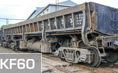 KF60AK型自翻车,2004年由太原装备公司在KF60型的基础上改进设计,载重60t。