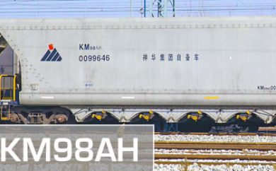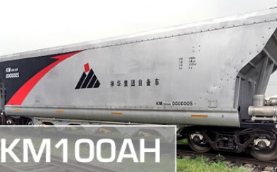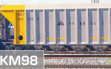 KM98AH型煤炭漏斗车,主要用于神华集团运送煤炭,载重98t,最高速度100km/h。