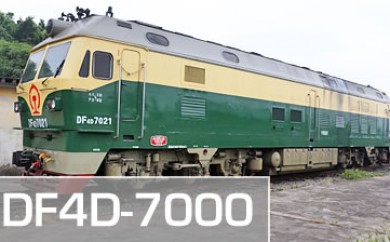 东风4D型准高速客运机车,是大连厂于1999年研发的装用了全悬挂转向架的DF4D型内燃机车,最高速度170km/h。