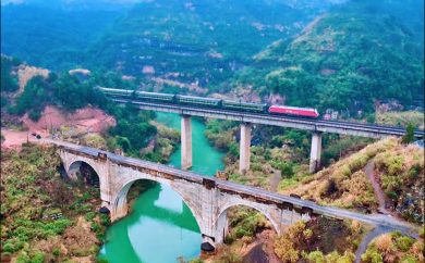 K1008次准备进入著名的鸡坑大桥