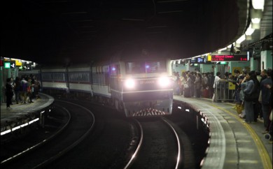 2012年12月14日。香港旺角东站。T816次,九龙-广州东,开往广州。广九直通车目前已使用SS8+25T编组。(IMG-5310-121214)