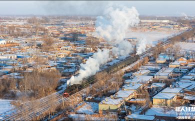 蒸汽旅游列车行驶在茫茫雪原上