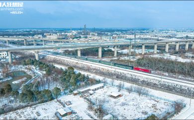 京沪大巡检穿过晨雾缓缓通过茅村站