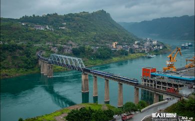 双机SS3B牵引货列行驶在金沙江大桥