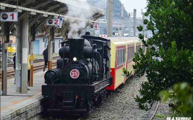蒸汽CK124和阿里山森铁列车在嘉义相会