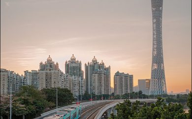 广州有轨电车在广州塔下飞奔