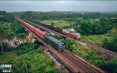 “有铁路的地方就有东风4”,广东的大地上还有着特别涂装的红色东风4,它们活跃在粤西的丘陵山中。
