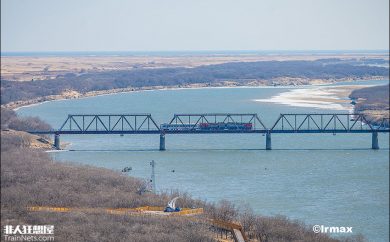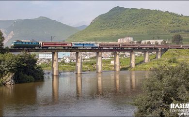 一列朝鲜客车沿着图们江驶来