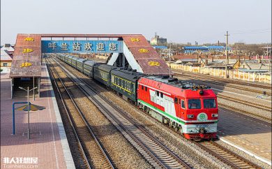 呼伦贝尔本务牵引K7038次通过呼兰站