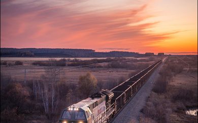 HXN5牵引货列行驶在夕阳时分