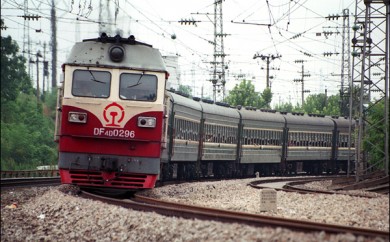 2003年8月。湖南株洲,响田桥。 DF4D牵引绿皮客车。(P3314)
