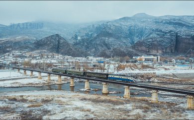 57126次行驶在暴雪夜袭后的峰峰矿区
