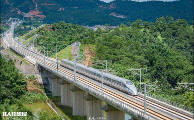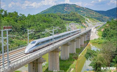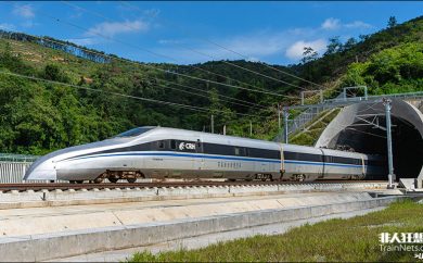 CRH380AM行驶在三亚站-凤凰机场站区间