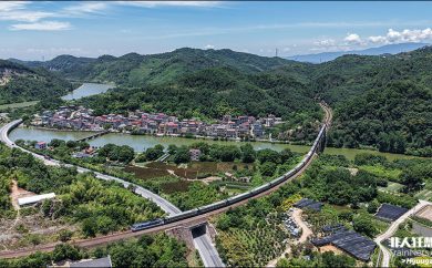 中欧班列通过武义站前的大弯道