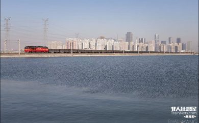 DF8B牵引货列驶过晒盐池