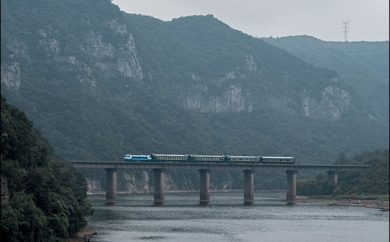 嘉峰通勤附挂轨检车行驶在侯月线上