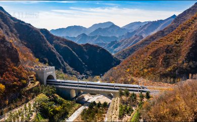 京张高铁智能动车组穿行在长城脚下