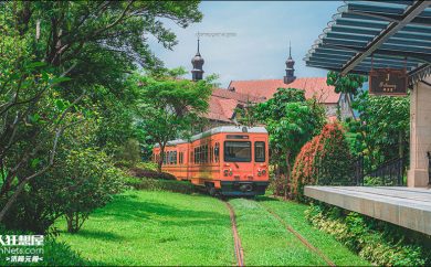华为松山湖小火车行驶在背坡溪流村基地内