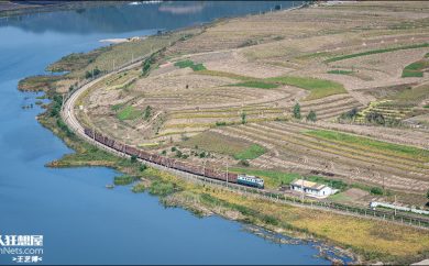 俄铁列车行驶在二号洞附近