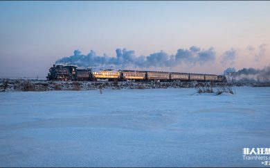 调兵山蒸汽专列驶过一片冰面