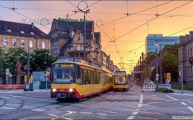 晚霞下的卡尔斯鲁厄城市快铁S7线