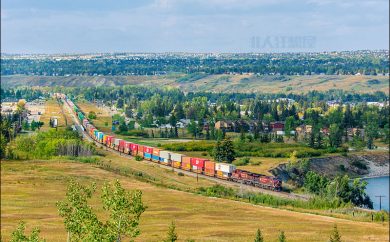 太平洋铁路货运列车驶上莱斯布里奇铁路大桥