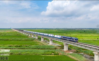 “丝路梦享号”披着晨光驶过沙山沟路段