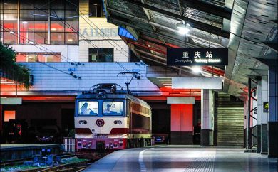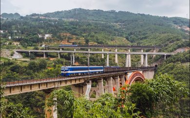 SS4与SS4G重联列车沿大渡河峡谷疾驰
