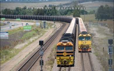 两列重载列车行驶在澳大利亚猎人谷铁路