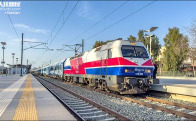 希腊长途列车在雅典中央站待发